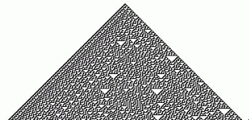 2x2x2 = 8 possible behaviors of those three cells: black-black-black, black-black-white, and so on. For each of those 8 combinations, the rule must specify either a black result or a white result in the new row. Thus, to specify a rule, we must specify 8 yes-or-no choices. The number of rules of this sort is therefore2x2x2x2x2x2x2x2 = 256. The book's website includes a very nice one-page summary of this idea, including some pictures that illustrate rule 30, rule 90, and rule 254.